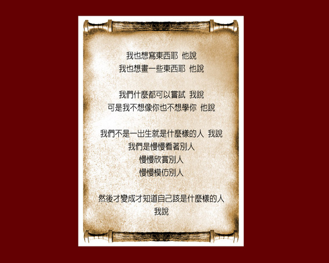 「你到底想表達什麼東西」他們又問我 我還是只能無奈的敷衍一番 好像每個人都只是想要個簡單的答案 好像有了答案所有的東西就清楚了 好像有了答案也就經歷了求解的過程一樣